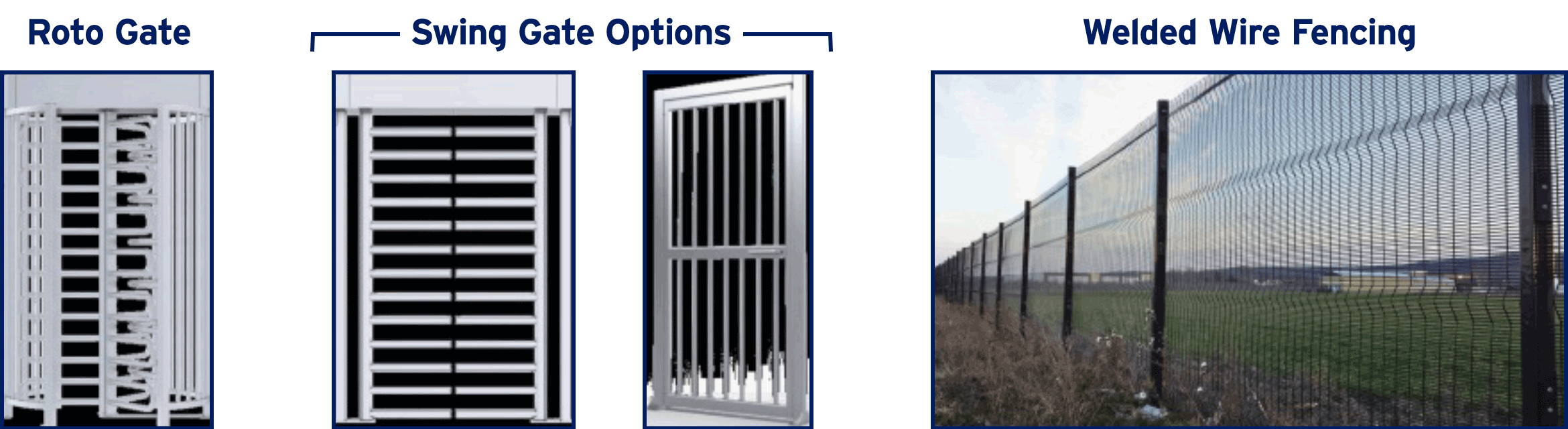 - HNTB presented various gating options for consideration with an analysis of each selection’s security level, accessibility, throughput, footprint, and pavement integration. BSD decided to proceed with HNTB’s primary recommendation, the free-wheel roto gate, along with a swing door for ADA and emergency access.